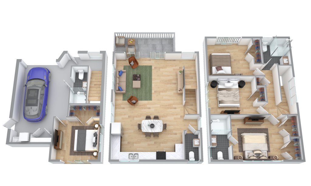 - Modern 3 Bathrooms & separate toilet – fully tiled up to ceiling height. A sleek, tiled bathroom with quality fixtures adds a touch of luxury to our daily routine.